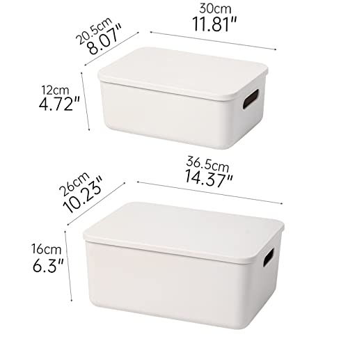 Plastic Storage Baskets With Lid Organizing Container Lidded Knit Storage Organizer Bins for Shelves Drawers Desktop Closet Playroom Classroom Office (4M+2S, Light grey)