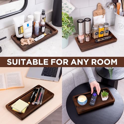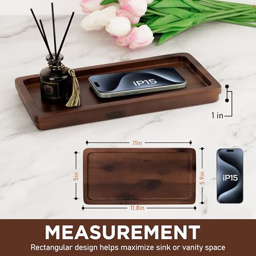 Bathroom Vanity Tray 11.8×5.9in of Acacia Wood – Elegant Organizer for Cosmetics, Jewelry, Perfume, Candle, Key – Premium Wood Tray for Bathroom, Kitchen, Countertop, Toilet Tank, Sink (Dark Brown)