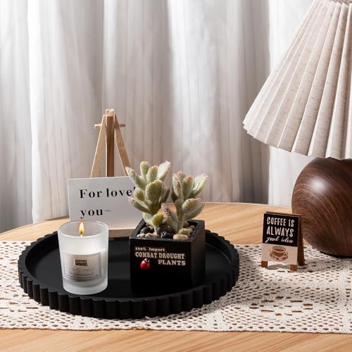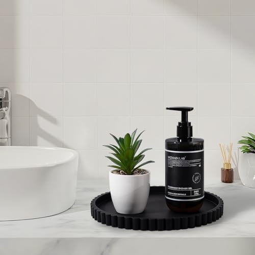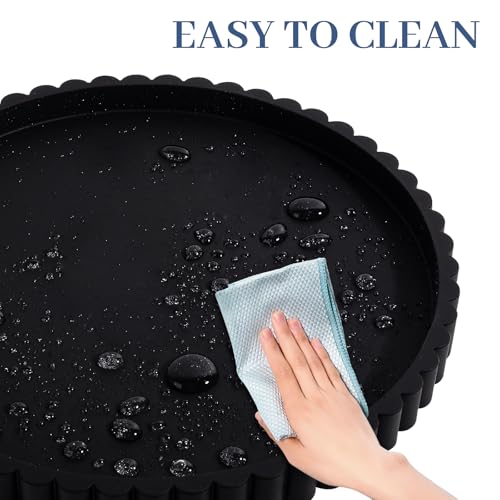Round Bathroom Tray Silicone Kitchen Counter Decor Vanity Organizer Decorative Coffee Table Tray for Perfume, Candle, Soap Dish, 9 Inch, Black