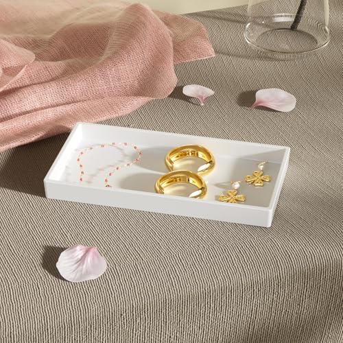 Vanity and Bathroom Tray, 7.7″ ABS Countertop Organizer,Waterproof Vanity Tray for Toilet Tank,Perfume,Soap,Keys,Bathroom Accessories,Kitchen and Bath Trays,Non Slip Small Trays,White