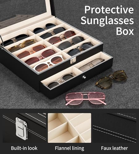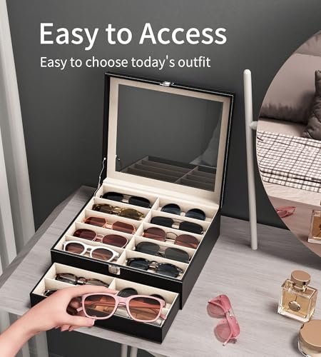 20 Slots Sunglass Organizer for Women Men Multiple Pairs of Sunglasses Storage Box See-Through Display Show Case