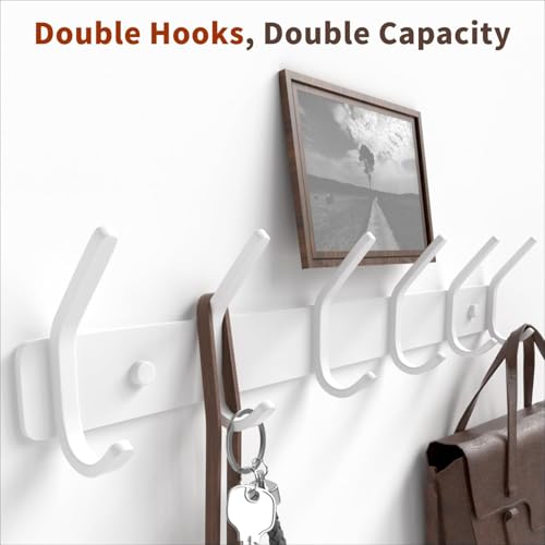 Saving Space: The wall-mounted coat rack features 6 double hooks maximize vertical space while keeping your coats and accessories neatly organized