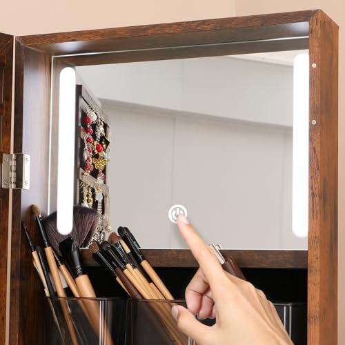 Touch Makeup Mirror,Convenient for makeup, jewelry fitting, skin care, no need to open and close the door frequently, use full body mirror. Unlike other jewelry mirrors where the light beads are exposed, our jewelry mirrors use laser coating technology, so even if you look directly at the light source, you won’t feel any pain in your eyes, protect your eyes.