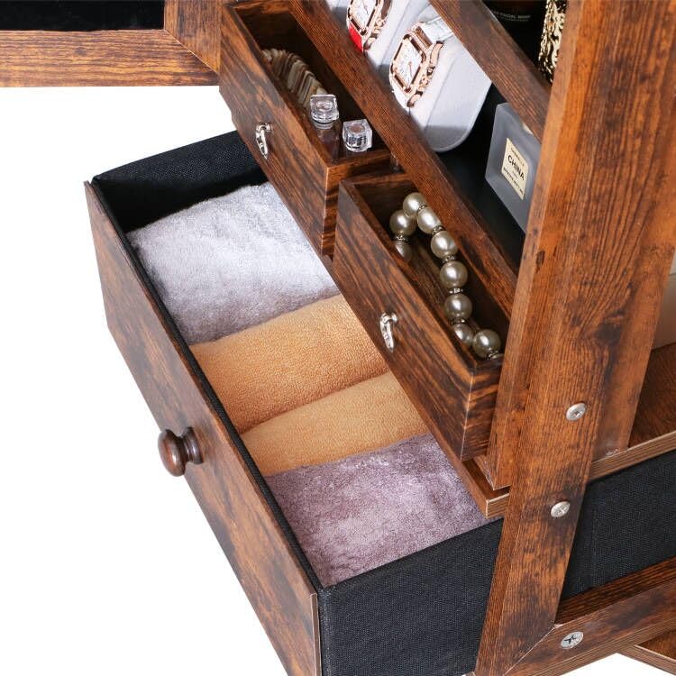 4 in 1, Space Saving,You get a jewelry organizer, full body mirror, vanity mirror with 2 storage boxes and shelves on the back, and stable metal hooks to hang your keys/belts/bags! This MASMIRE Jewelry Organizer can easily be a stylish display piece and superb storage shelf.