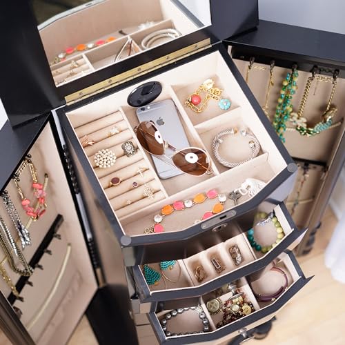 Hives and Honey Florence Jewelry Armoire – Jewelry Storage Organizer with 8 Felt-Lined Drawers, Vanity Mirror, Ring Rolls, Tangle-Free Necklace Hooks, Locking Lid