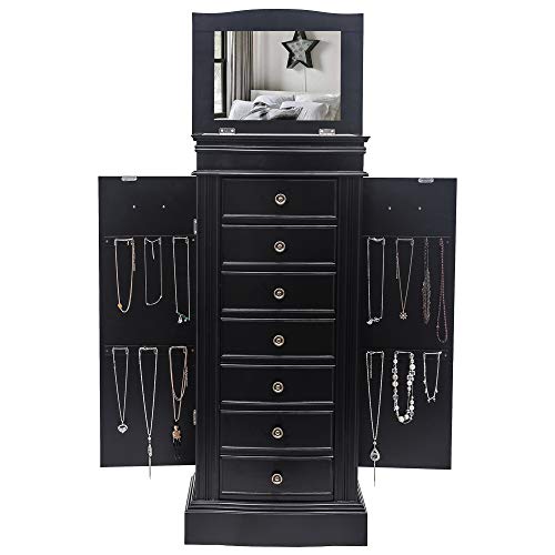 Vasitelan Large Standing Jewelry Armoire Cabinet Chest with with 7 Drawers,Jewelry Box Storage Organizer with Top Flip Mirror