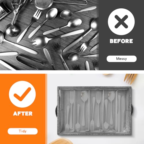 Grekos Flatware Utensil Storage Case, Silverware Storage Box with 4 Adjustable Dividers and Removable Lid, Cutlery Case Utensil with 5 Compartment Storage for Spoon Fork Knives Tableware (Gray)