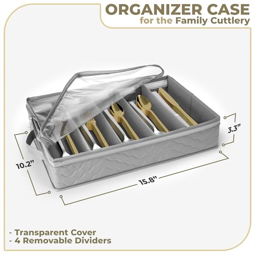Sorbus Flatware & Utensil Storage – Gray Fabric Chest Box for Storage and Organizing Utensils, Silverware, Flatware, Cutlery – Silverware Organizer Container with Zipper Clear Lid & Adjustable Divider