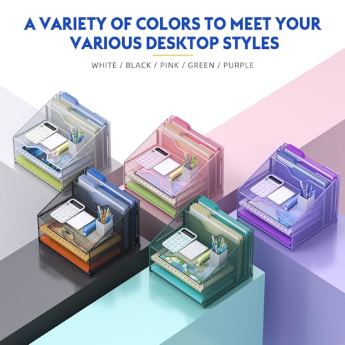 Samstar Desk File Organizer, Mesh Letter File Folder Holder with 3 Paper Trays and 2 Vertical Upright Section, for Office Supplies,Desk Accessories & Workspace,Black.