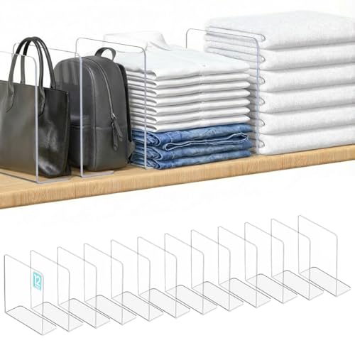 OKPOW Shelf Dividers for Closet Organization: 12 Pack Durable Clear Acrylic Divider Organizer for Shelves – Vertical Adjustable Shelving Separators for Clothing Purse