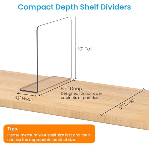 Endless Possibilities: Includes 12pcs versatile acrylic shelf dividers for endless organization possibilities. Ideal for home and office organization, including kitchens, bathrooms, bedrooms, and workspaces. They are easy to clean and maintain.