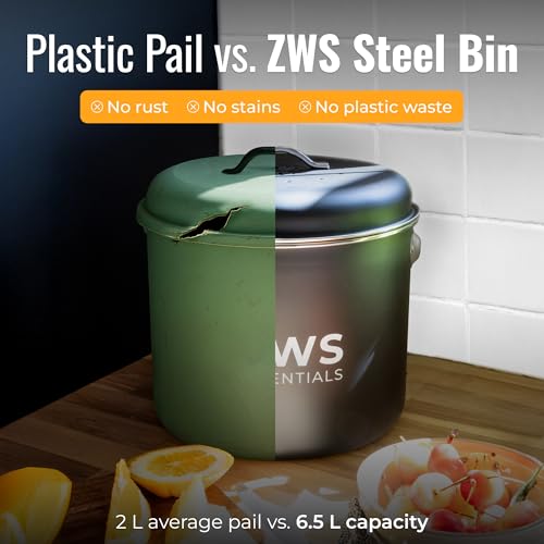Black Stainless Steel Compost Bin | 6.5L Odor-Free Kitchen Countertop Food Scrap Pail with Charcoal Filter | Compact Zero Waste Solution for Home and Apartment Kitchens