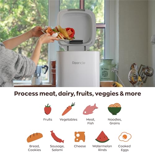 Reencle Prime Electric Composter – 14L Kitchen Composter, Decomposes Up to 2.2 lbs Food Waste Daily, Odorless Indoor Composting with Whisper-Quiet Technology & Rapid Decomposition (White)